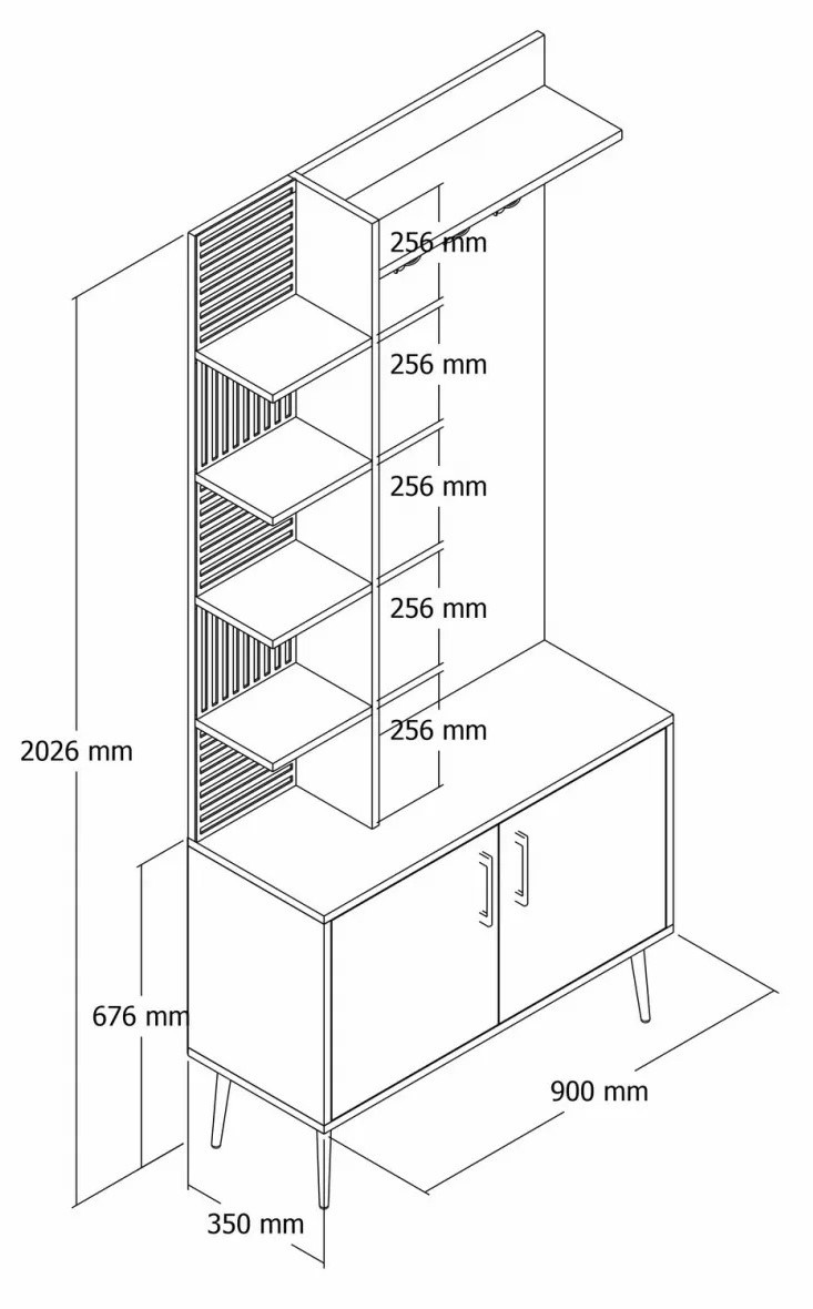 Многочисленные полки и удобная ширина 90 см делают стойку практичным решением для хранения повседневных вещей. Пальто, шапки, сумки и другие предметы будут аккуратно размещены и легко доступны. Высота полок 25.6 см позволяет хранить и более крупные вещи без затруднений.