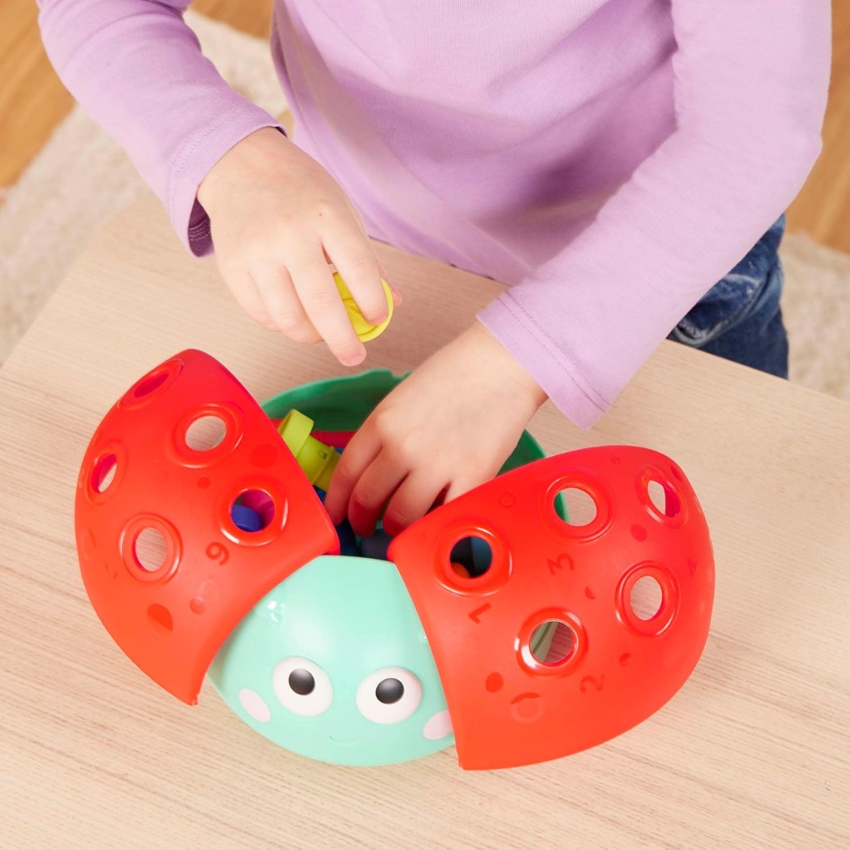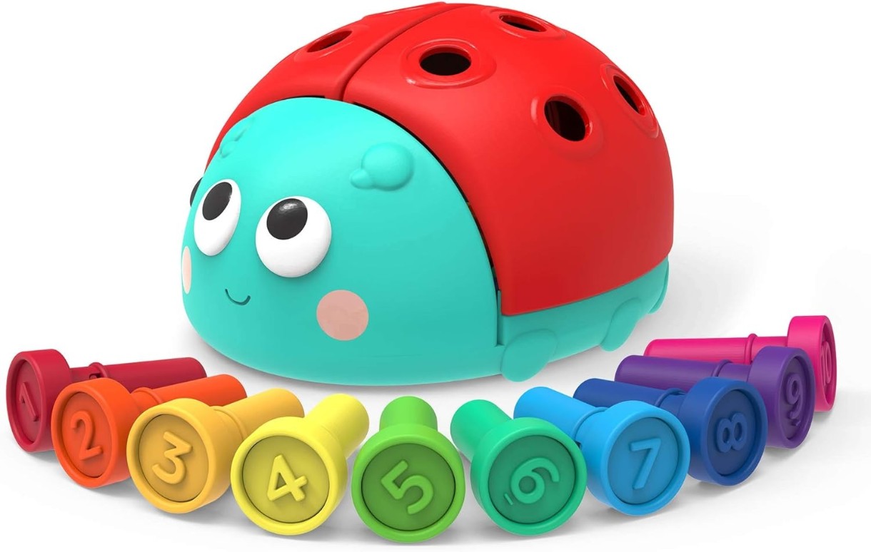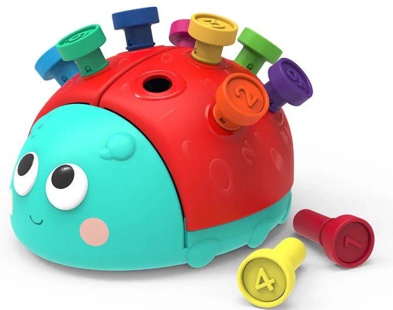 Эта дружелюбная божья коровка поставляется с 10 цветными колышками для подсчета и обучения. Изучайте цвета и числа, развивая мелкую моторику.