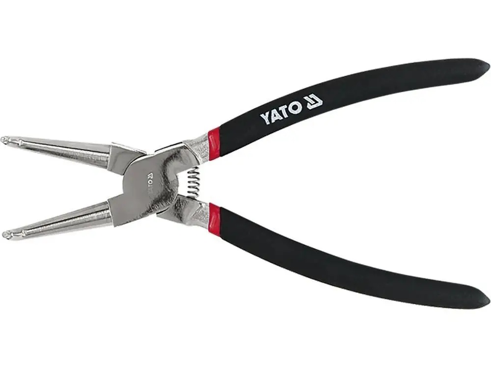 Съемник стопорных колец YATO YT-2143 - профессиональный инструмент, предназначенный для демонтажа и установки внутренних стопорных колец. Данный захват позволит значительно облегчить и ускорить работать с стопорными кольцами различного диаметра. Съемник имеет шарнирно-губцевую форму, состоящею из двух рукояток, которые вращаются на шарнире. Конструкция оснащенная шарнирным механизмом, для более плавного и прочного зажим и разводной пружиной, позволяющей облегчить развод рукоятки. Губки для захвата имеют изогнутую рабочую часть специальной формы, позволяющую обеспечить прочную фиксацию демонтажного кольца, не боясь соскальзывания или повреждения детали в процессе демонтажа или установки. Корпус съемника выполнен из прочной инструментальной стали, высокого качества, поверхность которого обработана воронением, что придаст антикоррозийную устойчивость и обеспечит длительный срок службы инструмента. Для прочности захвата рукоятки выполнены из прорезиненного пропилена. Данный тип инструмента нашел свое применение в машиностроении, автомастерских и СТО.