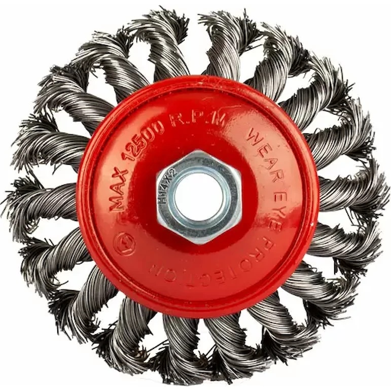 Щетка-крацовка круговая изготовлена из проволоки из высокопрочной стали с высокой плотностью и повышенной эластичностью. Конусная форма облегчает доступ к труднодоступным местам, таким как прямые углы и края.