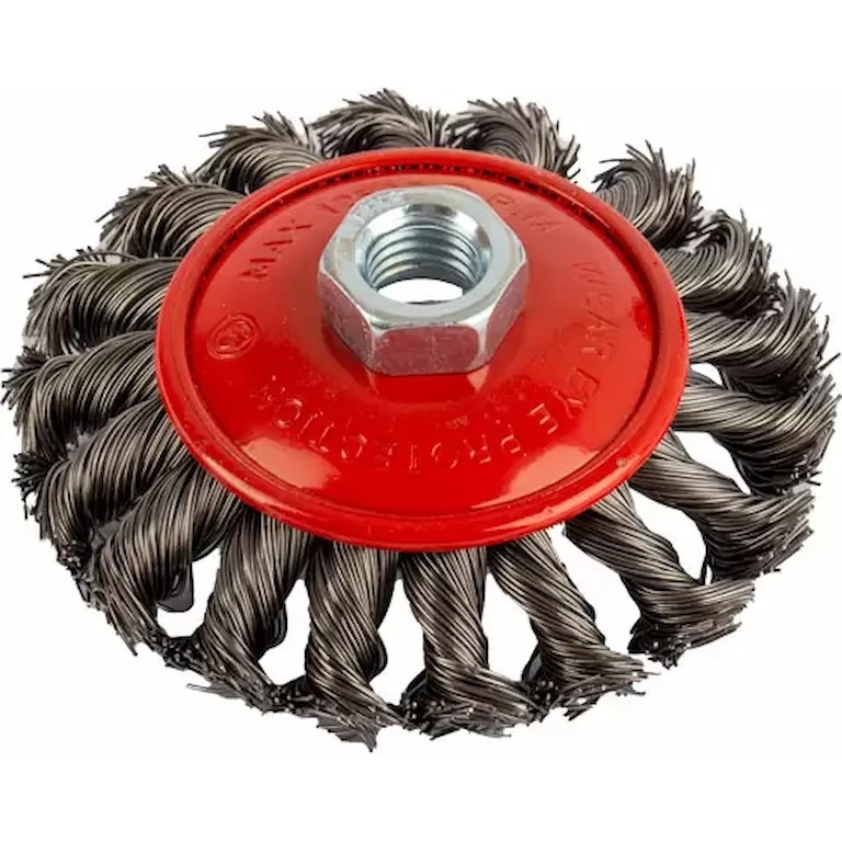 Щетка-крацовка круговая изготовлена из проволоки из высокопрочной стали с высокой плотностью и повышенной эластичностью. Конусная форма облегчает доступ к труднодоступным местам, таким как прямые углы и края.