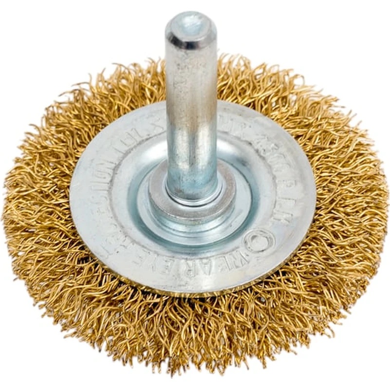 Щётка с витой проволокой 0.3 мм. Для удаления ржавчины, красок, лаков с металлических поверхностей. Хвостовик диаметром 6.35 мм (1/4"). Упаковка: блистер