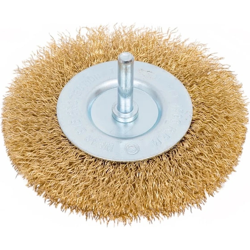 Щётка с витой проволокой 0.3 мм. Для удаления ржавчины, красок, лаков с металлических поверхностей. Хвостовик диаметром 6.35 мм (1/4"). Упаковка: блистер