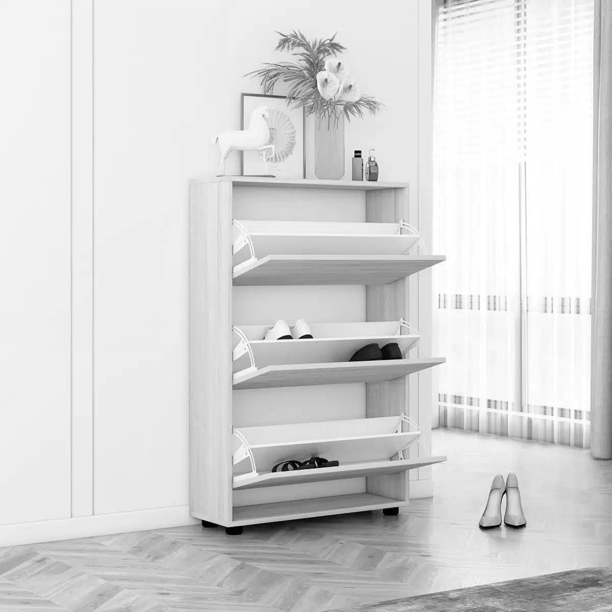Обувница Mobildor-Lux Leo 90x27x125 White/Oak Sonoma (00013513)