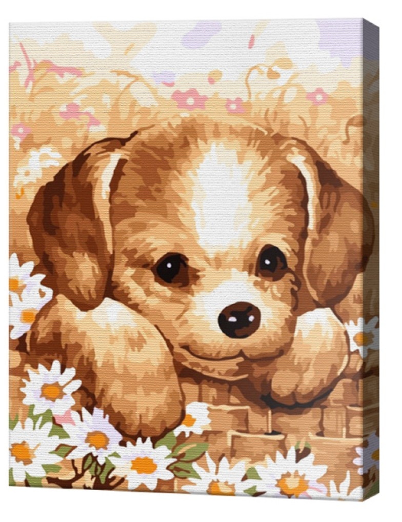 Картина по номерам Art Gallery Premium 20x30cm Карамельный щенок в ромашках (CX3521)