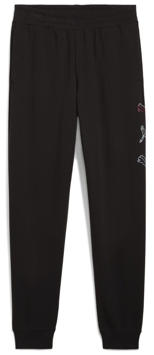 Графический принт с логотипом Puma Cat на левой штанине подчеркивает спортивный дух и индивидуальность, а использование сертифицированного хлопка по программе "Better Cotton" делает эти брюки не только стильными, но и более экологичными.