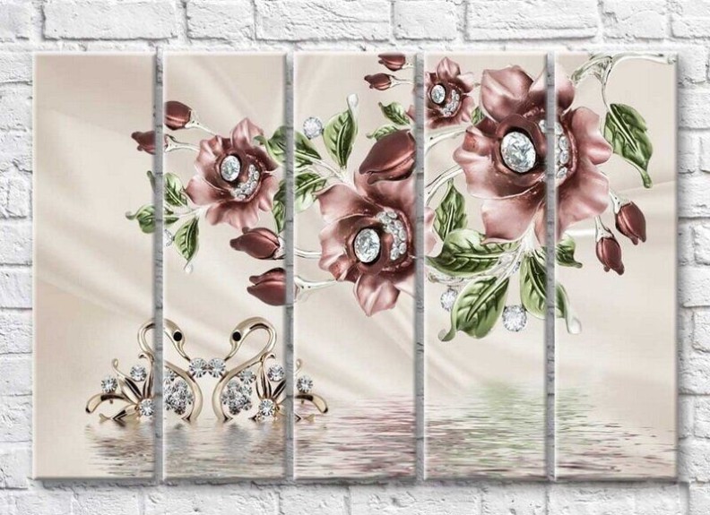 Картина Gallerix Roses and swans from jewelry against the background of water (3551875)