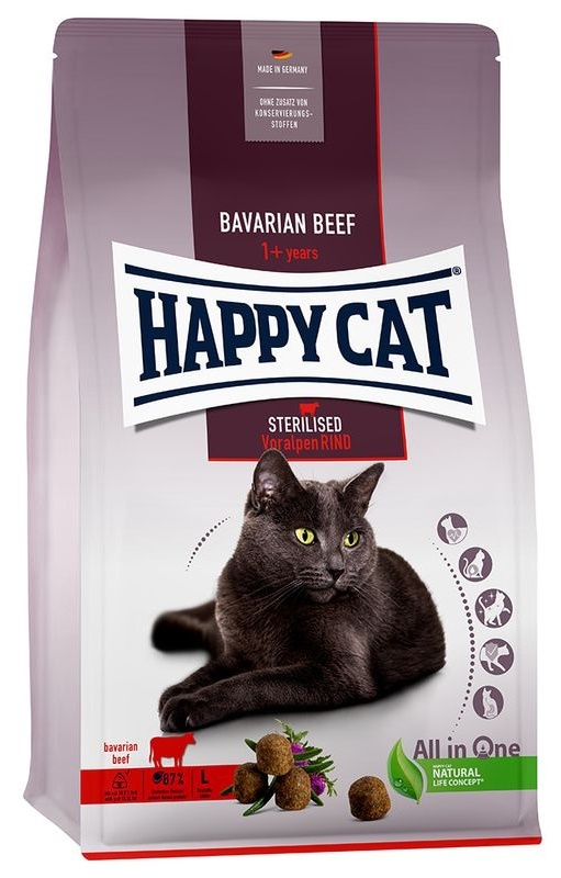 Корм Happy Cat Adult Sterilised Voralpen-Rind разработан специально для кастрированных котов и стерилизованных кошек. Этот сытный и вкусный корм, богатый балластными веществами, содержит всего 10,5% жира и большое количество ценного белка животного происхождения из легко усваиваемого мяса говядины и вкусного мяса птицы.