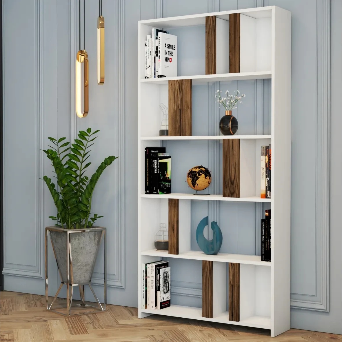 Стеллаж Trendy Lima White/Walnut 180x90x20cm GTR000437