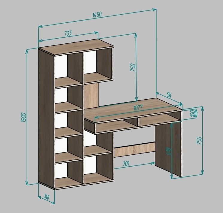 Письменный стол Yasen Лайт Oak Baroque Ristretto/Cashmere