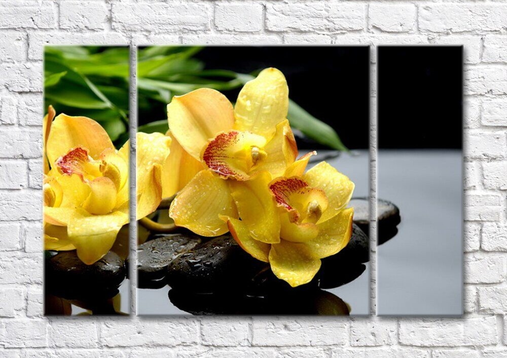Картина Magic Color Branch of Yellow orchid on wet Black pebbles (500184)