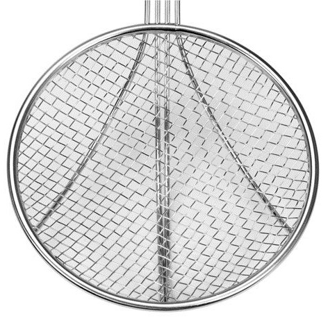 Наружный диаметр сита составляет 200 мм. Усиленная ручка длиной 33 см выполнена из проволоки толщиной 4 мм. Благодаря этому ложка очень прочная.