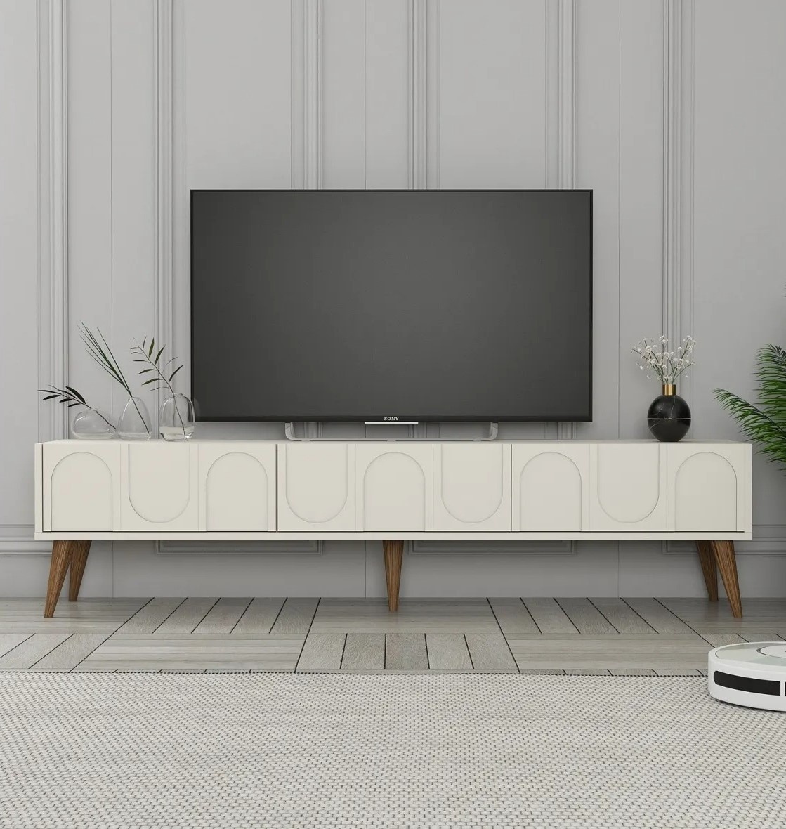 Тумба под ТВ Trendy Lyon 44 Cream/Walnut 180x44x35cm GTR006396