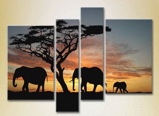 Картина Rainbow Polyptych Elephants sunset in Africa (2222235)