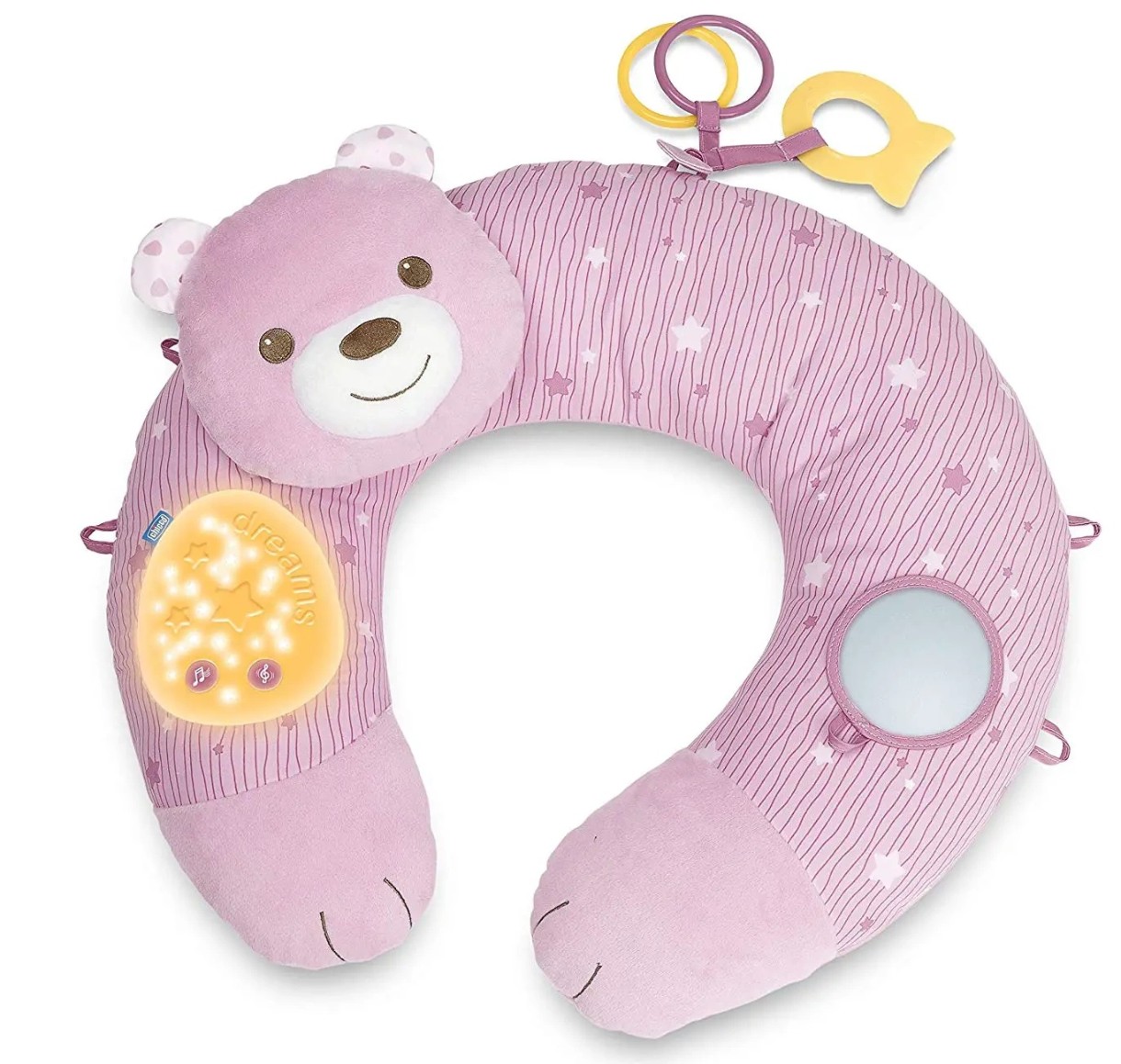 Эволюционный игровой коврик позволяет ребенку расслабиться на разных стадиях роста. Эта подушка и игровой коврик с различными огнями и мелодиями очень практичны для игр или отдыха. Эта удобная подушка имеет 3 положения наклона: 1. Лежание – удобное гнездышко для времяпрепровождения; 2. Положение на животе: идеально подходит для игры и укрепления мышц ребенка в соответствии с рекомендациями педиатров; 3. Сидение: мягкая поддержка, позволяющая ребенку сидеть и играть, когда он не может ходить. Эта подушка и игровой коврик включает в себя различные игровые занятия (зеркало, мягкий пластик для прорезывания зубов и 2 кольца), 30 минут классической музыки и нежный и яркий световой эффект в зависимости от ритма музыки. Ширина регулируется по размеру ребенка. Можно стирать в машине.