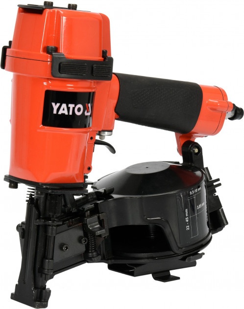 Гвоздезабивной пневматический пистолет YATO YT-09211 используется при строительстве, улучшает укладку или ремонт кровельного покрытия. Для работы используются гвозди, закрепленные на проволоке в бобину под углом 15°. Очень прочный и легкий корпус из алюминиевого сплава.