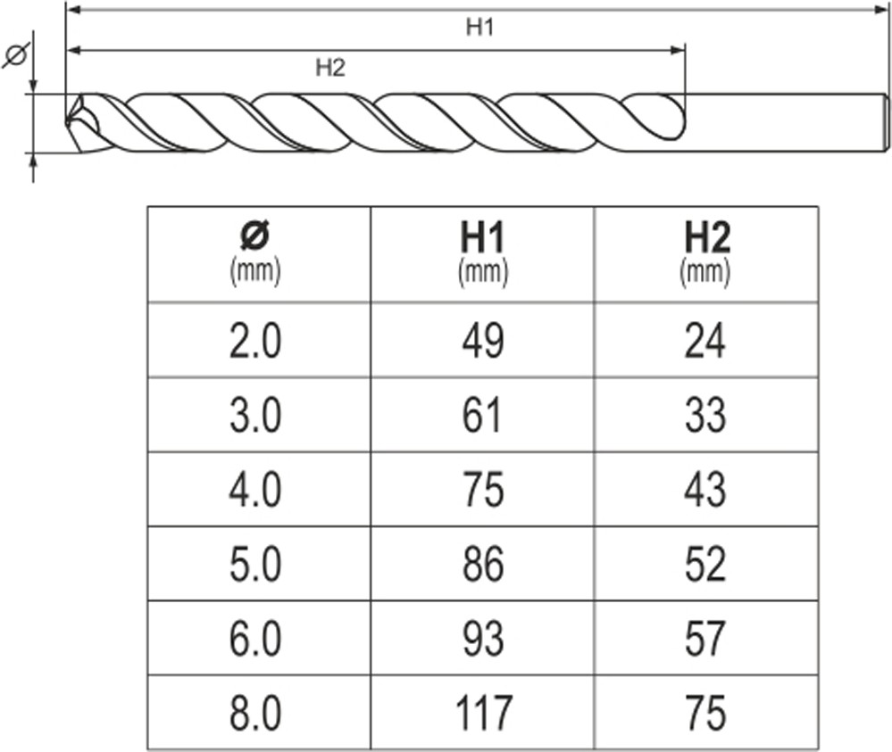 2, 3, 4, 5, 6, 8 мм