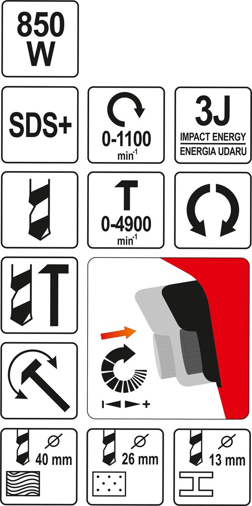 Макс. диаметр сверления (бетон)26 мм