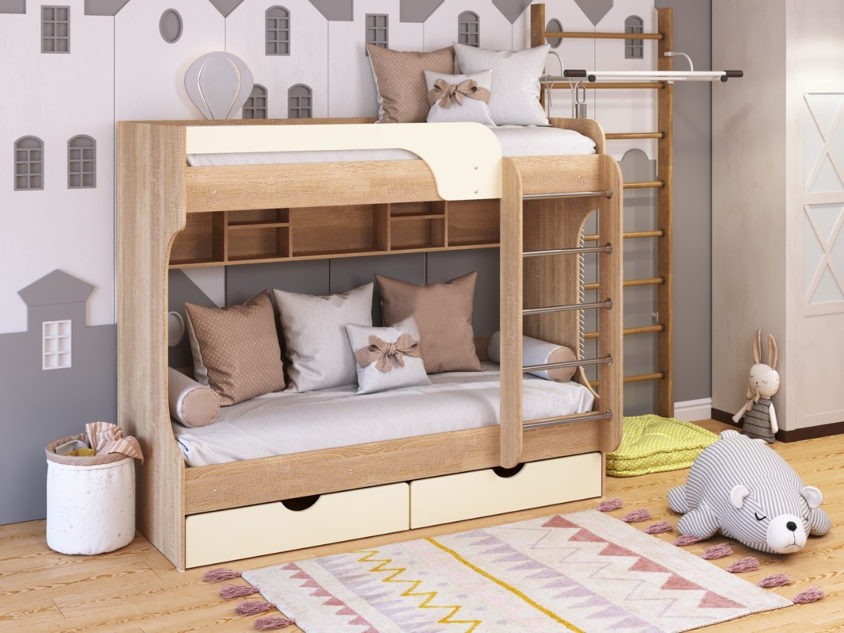 Детская кровать Пехотин Юнга Дуб Молочный/Ваниль