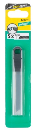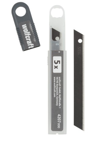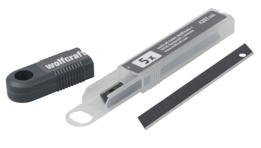 - Пять черных, очень острых лезвий с отламывающимися сегментами шириной 9 мм, изготовленных из высококачественной углеродистой стали, благодаря специальной заточке согласно сертификату VPA, обеспечивают на 30 % лучшую производительность резки по сравнению с обычными лезвиями. Они совместимы со всеми стандартными ножами с отламывающимися сегментами шириной 9 мм. Лезвия состоят из отламывающихся сегментов. Их можно надежно хранить в прозрачном пластмассовом футляре.