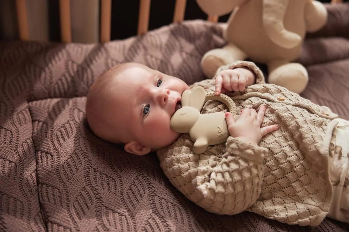 Чтобы немного облегчить боль, ребенку полезно что-то кусать. Это уменьшает давление на десны во время появления зубов. Этот прорезыватель из натурального каучука можно использовать в любом возрасте, и он безопасен для детей с 0 месяцев.