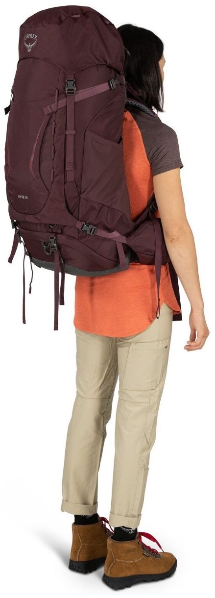 Osprey Kyte 58 — универсальный женский рюкзак разработанный специально для походов средней и большой продолжительности, требующих большого количества снаряжения. Огромная вместимость модели гарантирует пространство даже для громоздкого снаряжения и позволяет взять с собой больше, чем просто предметы первой необходимости. Доступ к основному отделению стал проще, благодаря большой U-образной молнии на передней панели, которая позволяет легко упорядочивать вещи и держать все необходимое под рукой.