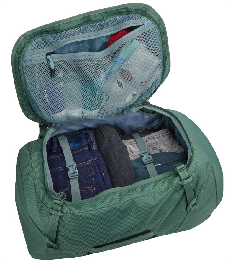 -Внутренние стягивающие ремни и сетчатые карманы надёжно удерживают одежду и снаряжение
