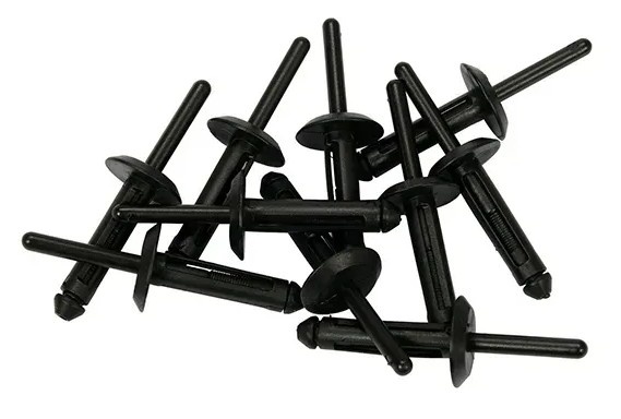 Набор из 10 пластиковых заклепок размером 5,0x15,8 мм. Предназначен для монтажа, среди прочего пластиковые молдинги, автомобильные покрытия, обивка, кожухи двигателя, колесные арки.