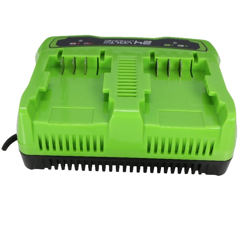 Зарядное устройство Greenworks G24X2UC2 24V подойдет для одновременной зарядки двух аккумуляторов напряжением 24V и емкостью 2Ач и 4 Ач. В плату зарядки встроен чип защиты от перезаряда, который останавливает зарядку при достижении уровня заряда 100%. На корпусе установлен индикатор заряда. Основа зарядки прорезинена для предотвращения скольжения, также есть отверстие, с помощью которого можно разместить зарядку на стене. Устройство питается от сети 230V AC 50-60 Гц, 2 А.