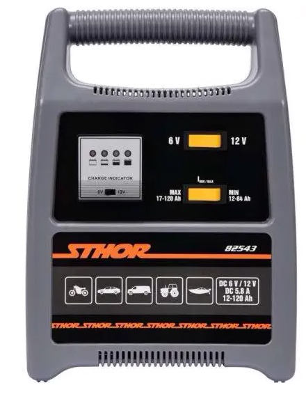 Зарядное устройство STH 82543 - это надежное и универсальное устройство, предназначенное для зарядки аккумуляторов автомобилей, мотоциклов, тракторов и других транспортных средств.