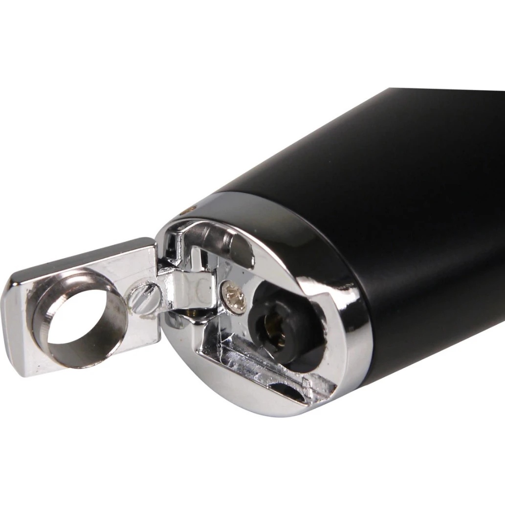 Черная зажигалка преобразит момент зажигания любимой сигары в настоящее удовольствие. Уникальная скользящая система зажигания обеспечивает простоту использования, а голубое трехструйное пламя можно регулировать по вашему желанию. Кроме того, в нижней части зажигалки удобно расположен складной круглый нож для сигар диаметром 7 мм, добавляя функциональность и стиль этому элегантному аксессуару.