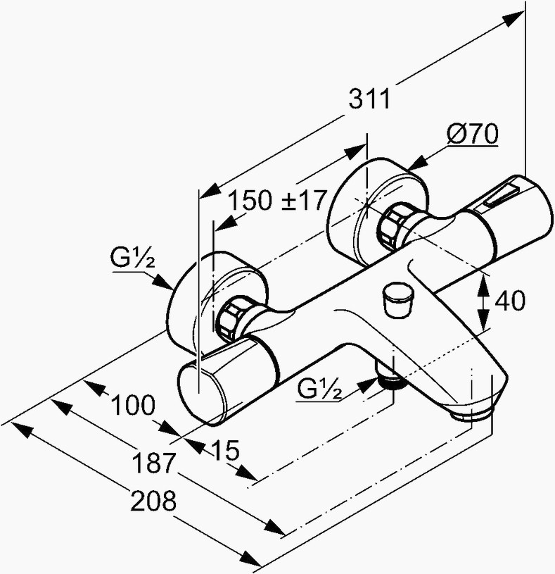 Hot-stop. Смеситель с ограничением температуры воды при 38°С.