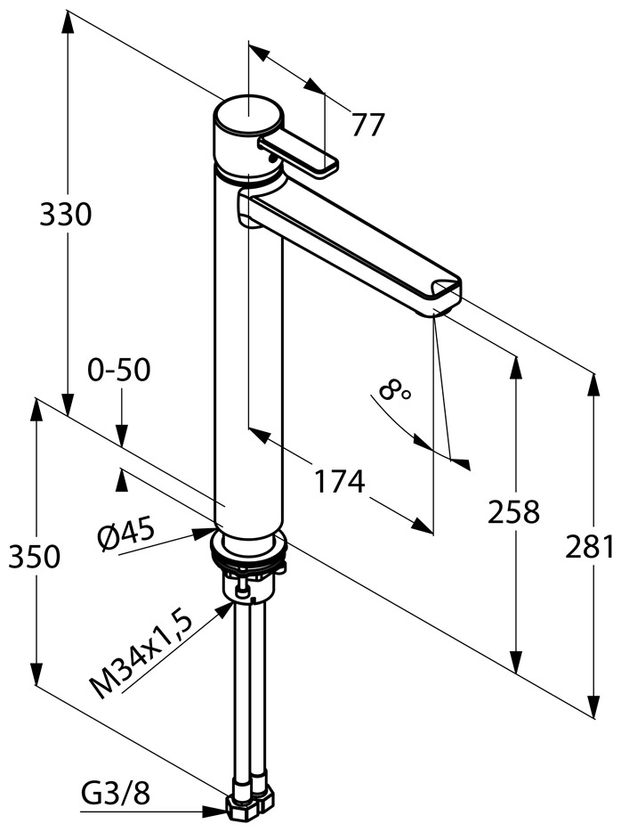 Высота излива258 мм