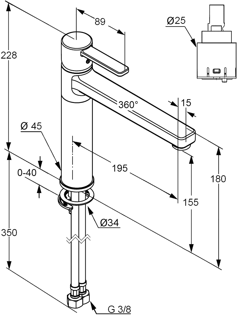 — гибкий подвод воды G 3/8;