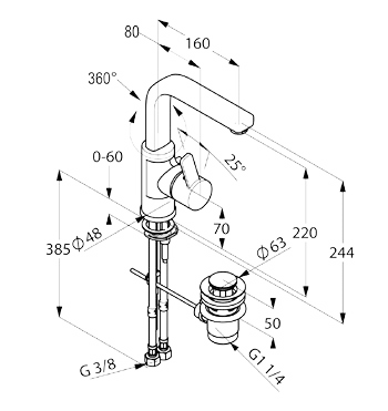 • Высота излива