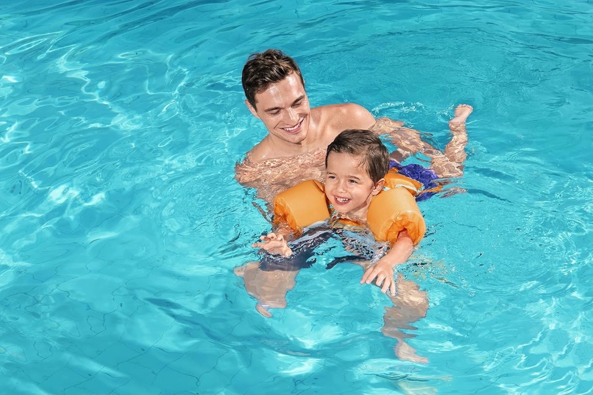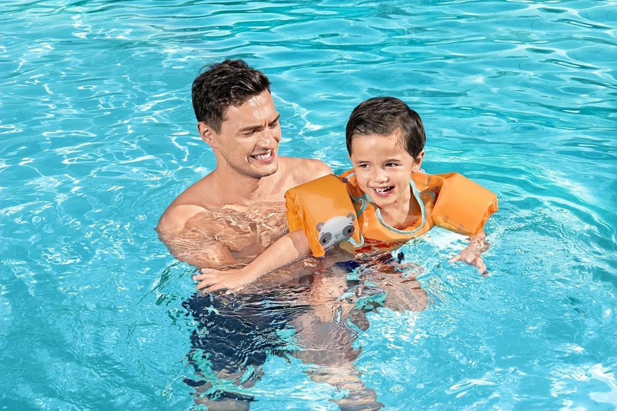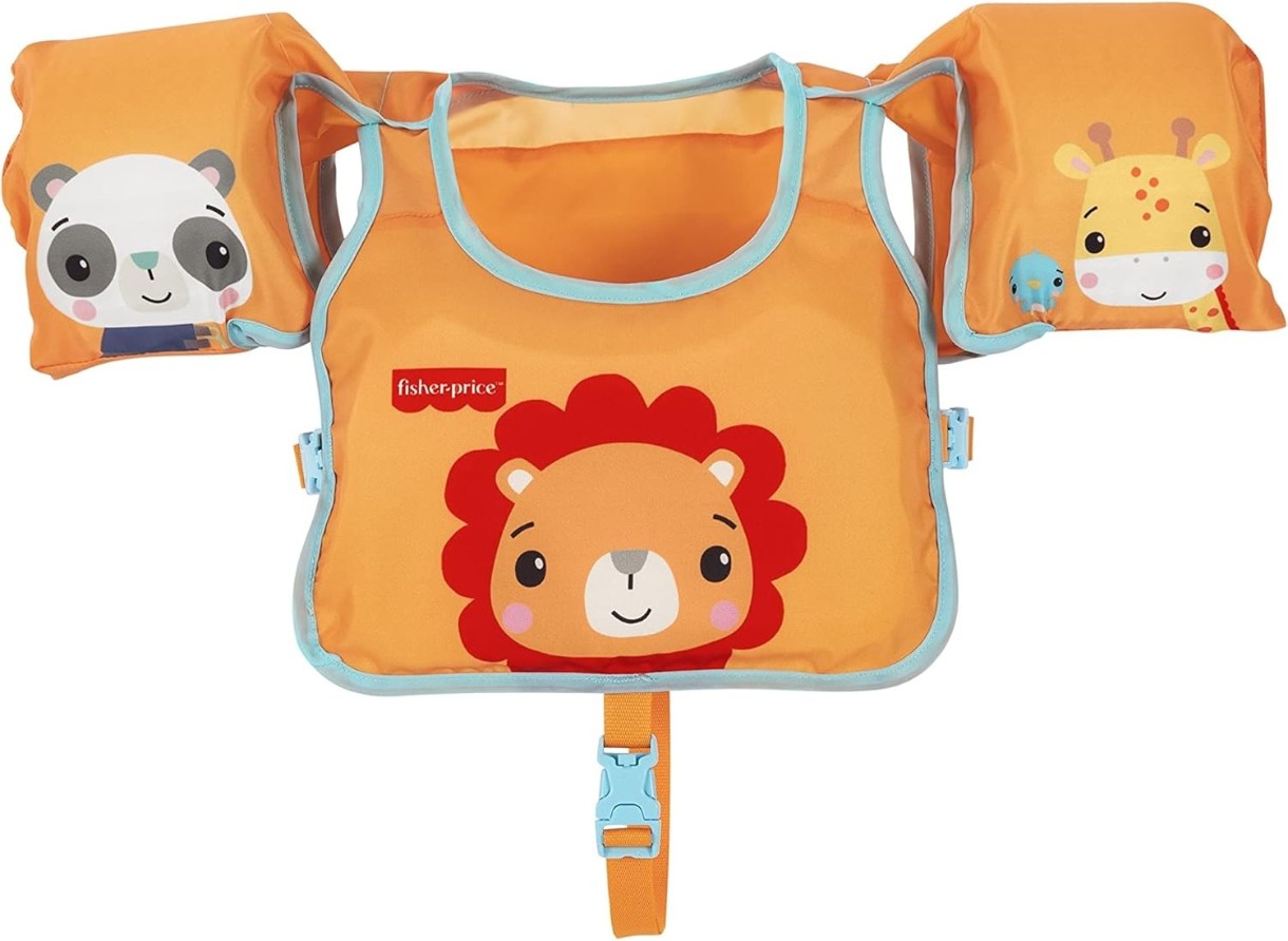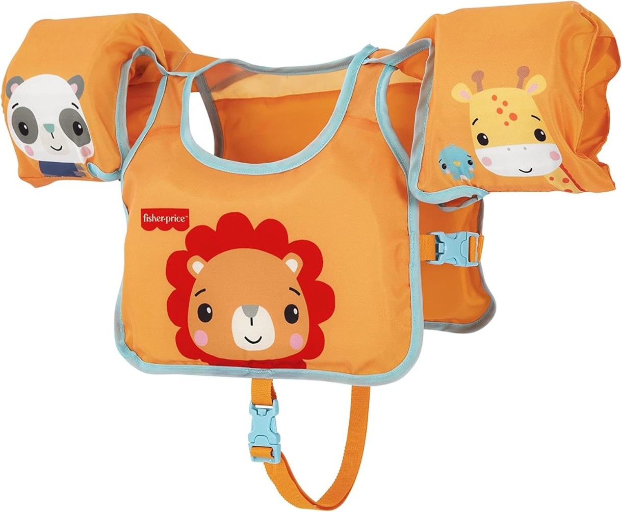 Жилет для плавания Fisher‑Price Aqua Speed Swim Pal (93522) разработан для малышей, которые только начинают знакомство с водой и плаванием. Он оснащён рукавами с наполнителем из пены, которые обеспечивают необходимую плавучесть и помогают жилету сохранять правильное положение на теле ребёнка, позволяя свободно двигаться. Поверхность жилета мягкая, защищает нежную кожу ребёнка и обеспечивает UPF 50+ от солнца. Регулируемые пряжки и ремни позволяют подогнать жилет под размер ребёнка, а яркий и забавный дизайн делает его привлекательным для детей. Жилет подходит для детей примерно от 3 до 6 лет с весом от 18 кг до 30 кг и отлично подходит для игр и упражнений в бассейне, на озере или на пляже под присмотром взрослых.