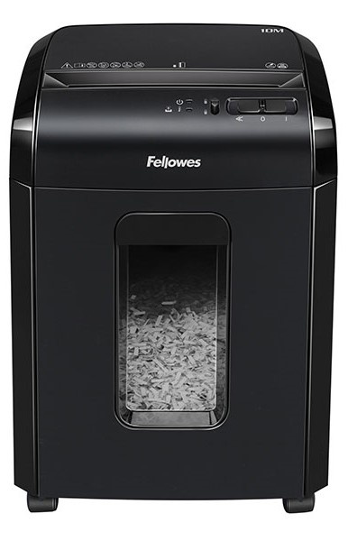 Powershred 10M — самый доступный шредер Fellowes с уровнем секретности P-5 и размером фрагмента 2×12 мм. Лист А4 разрезается на более чем 2000 фрагментов. Уничтожитель обеспечивает повышенную защиту от восстановления информации — воссоздать или прочитать такой документ в бытовых условиях невозможно.