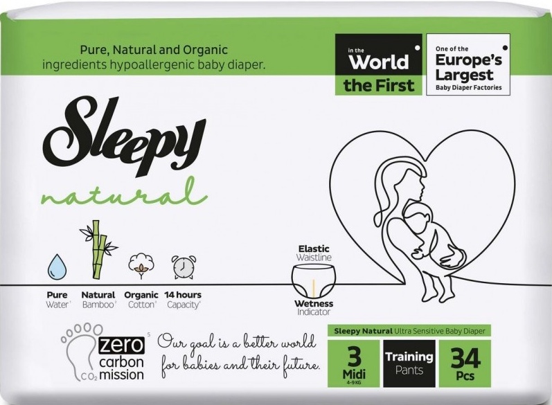 Подгузники-трусики Sleepy Natural Midi 3/34pcs