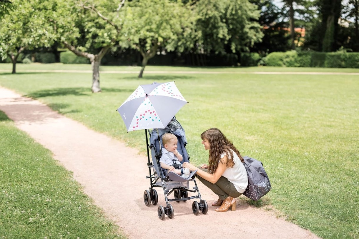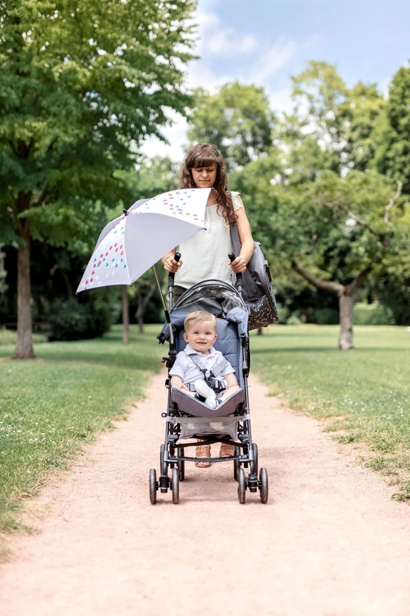 Этот универсальный зонт – быстрое и эффективное решение, которое делает поездки с малышом комфортными и безопасными. Он защищает от ультрафиолетовых лучей (UPF 50+), обеспечивая надежную тень в любой ситуации.