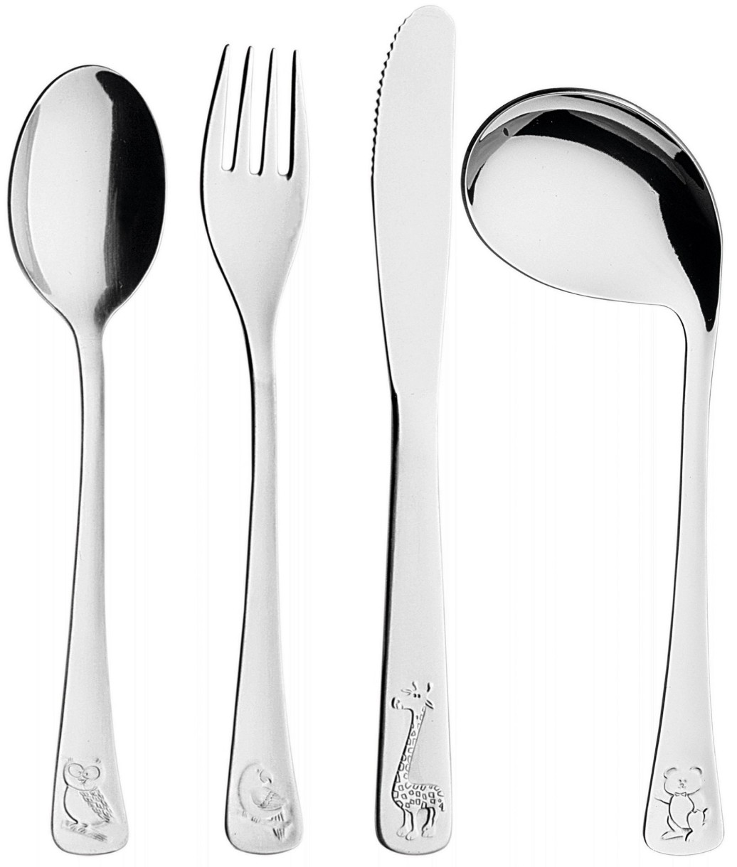 Набор столовых приборов для детей Tramontina ZOO с рисунком на ручках. Столовые приборы выполнены из высококачественной нержавеющей стали AISI 420. Качество стали гарантирует, что продукция Tramontina не подвержена коррозии и (при соблюдении условий эксплуатации) сохранит блестящий вид надолго.