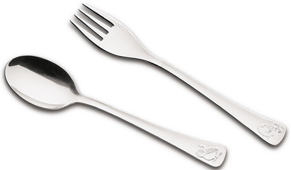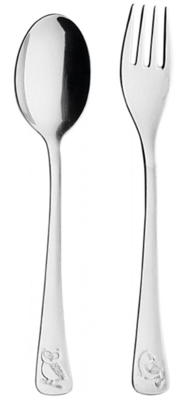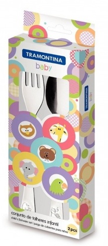 Набор столовых приборов для детей Tramontina ZOO, состоящий из ложечки и вилки с рисунком на ручках. Столовые приборы выполнены из высококачественной нержавеющей стали AISI 420. Качество стали гарантирует, что продукция Tramontina не подвержена коррозии и (при соблюдении условий эксплуатации) сохранит блестящий вид надолго.