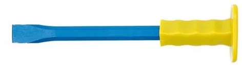 Зубило с протектором применяется для демонтажа кирпичных и бетонных сооружений, а также для накернивания металла в резьбовых соединениях при его залипании. Рабочая часть инструмента выполнена из углеродистой стали с закаленной рабочей частью. Рукоятка с резиновым фартуком и углублениями для пальцев обеспечивает надежный хват и защиту рук от удара. Длина зубила 300 мм.