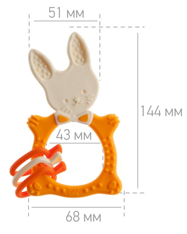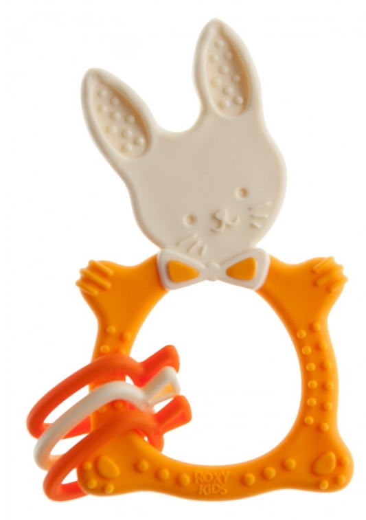 Прорезыватель для зубов BUNNY TEETHER от ROXY-KIDS подходит для всех стадий прорезывания зубов у малышей. Он состоит из элементов различной степени жесткости, что позволяет малышу использовать на протяжении всего времени прорезывания. На начальном этапе, когда у малыша раздражены десны, он может чесать их о мягкую рельефную голову зайчика. На завершающем этапе малыш сможет грызть более твердое тело и твердые морковки для лучшего эффекта. BUNNY TEETHER пригодится даже при прорезывания жевательных зубов, потому что ушки зайца по форме похожи на капу, что позволит малышу снять зуд с самых дальних десен. Прорезыватель сделан из безопасных гипоаллергенных материалов (термоэластопласта и полипропилена), так что ребенок может грызть его целыми днями. Еще одна отличительная особенность BUNNY TEETHER это тело, сделанное в форме кольца, которое малыш сможет удобно держать. В ассортименте ROXY-KIDS прорезыватели BUNNY TEETHER представлены в нескольких цветах. Соответствует стандартам безопасности товаров для детей.