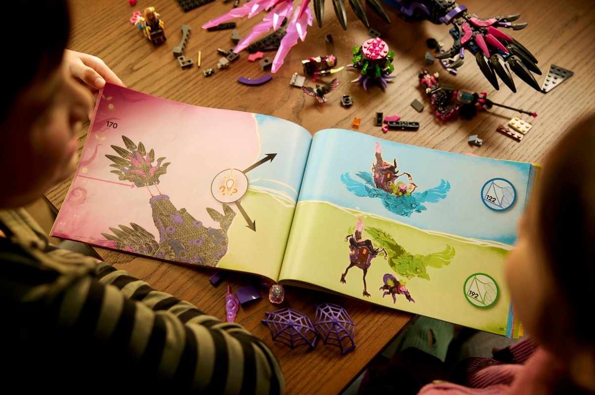 Минифигурки Матео, Астрид, колдуньи Никогда, Диззи и Догана, а также фигурка Z-Blob оживляют приключение. В набор также входят инструкции по сборке, основанные на сюжете, которые позволят детям погрузиться в действие и стать героями, помогая охотникам за мечтой победить ведьму-Невидимку.